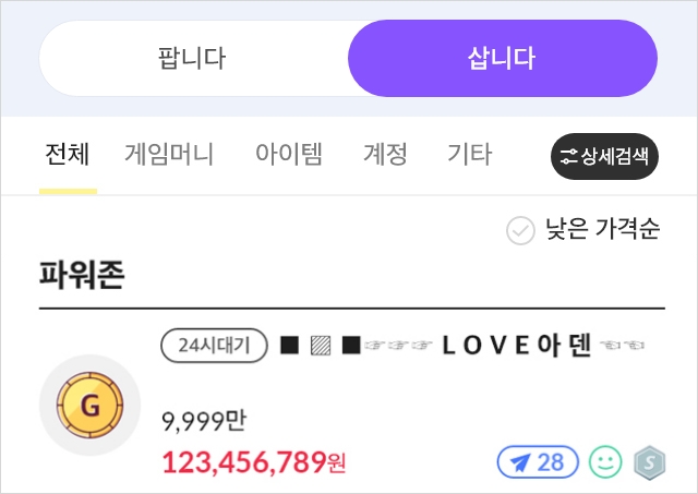 찾고자 하는 게임 / 서버를 선택하시면 해당 게임의 서버 상품 리스트로 전환 됩니다.