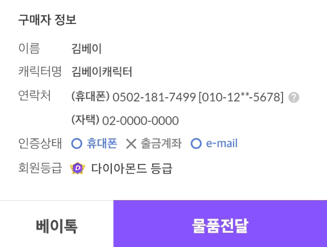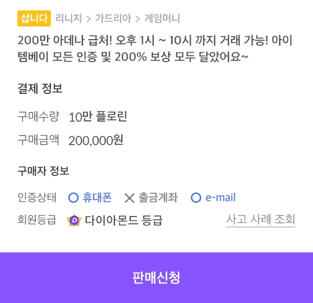 구매자의 정보와 일치할 경우 게임 내에서 상품을 전달하세요.